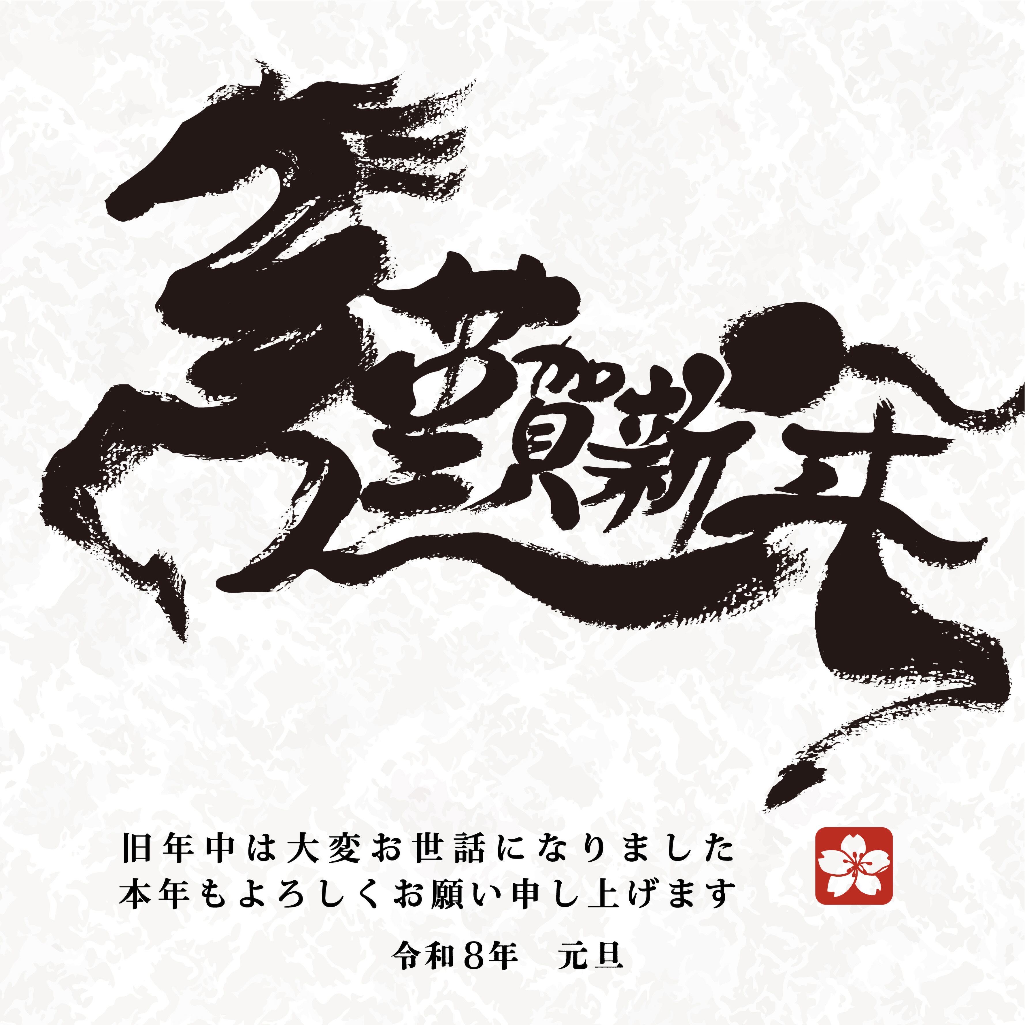 2026年 午年 年賀状 謹賀新年 絵文字(単品/黒)正方形