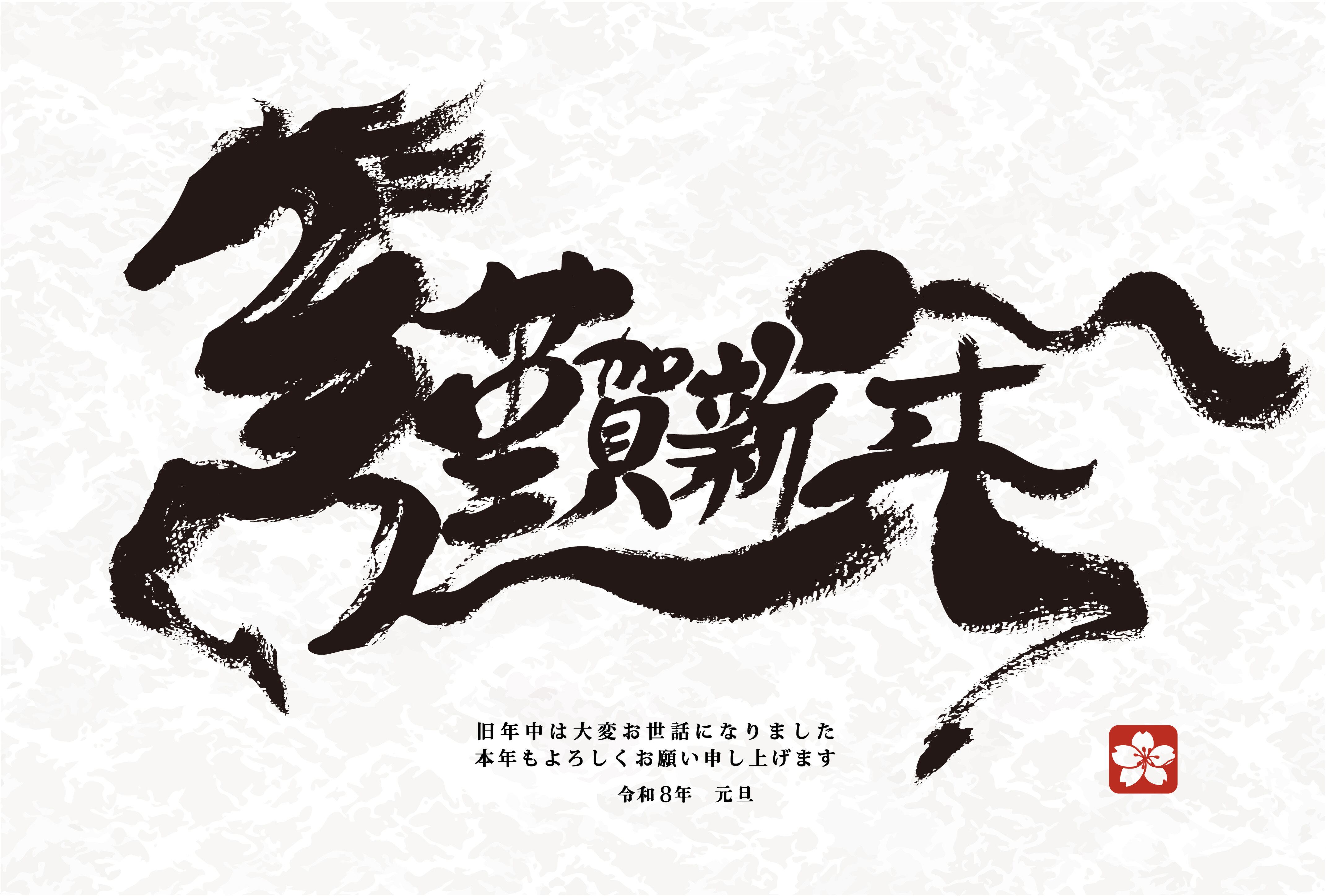 2026年 午年 年賀状 謹賀新年 絵文字(単品/黒)ハガキ