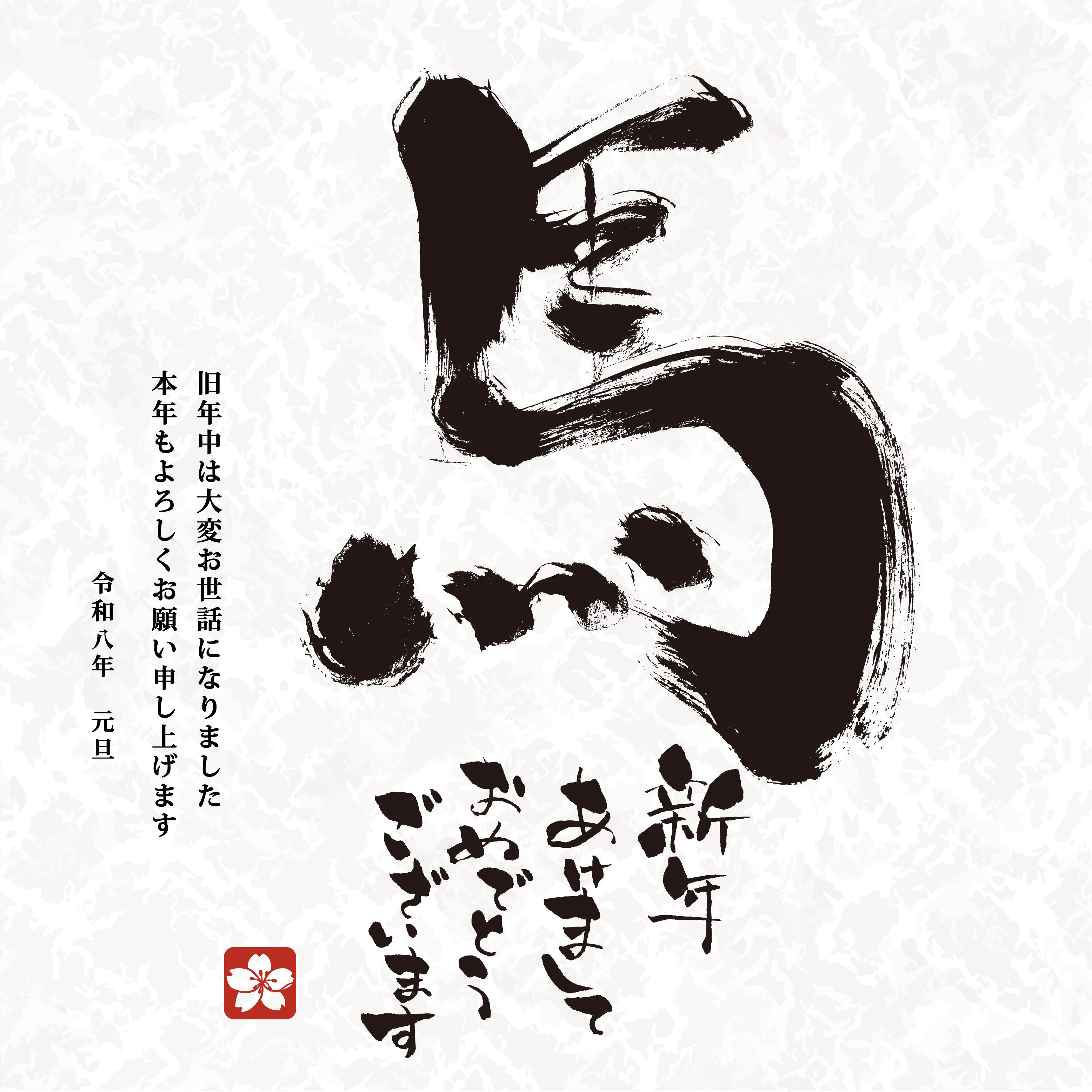 2026年 午年 年賀状 馬 文字(単品)正方形