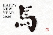 2026年 午年 年賀状 馬 文字(単品/英語)ハガキ