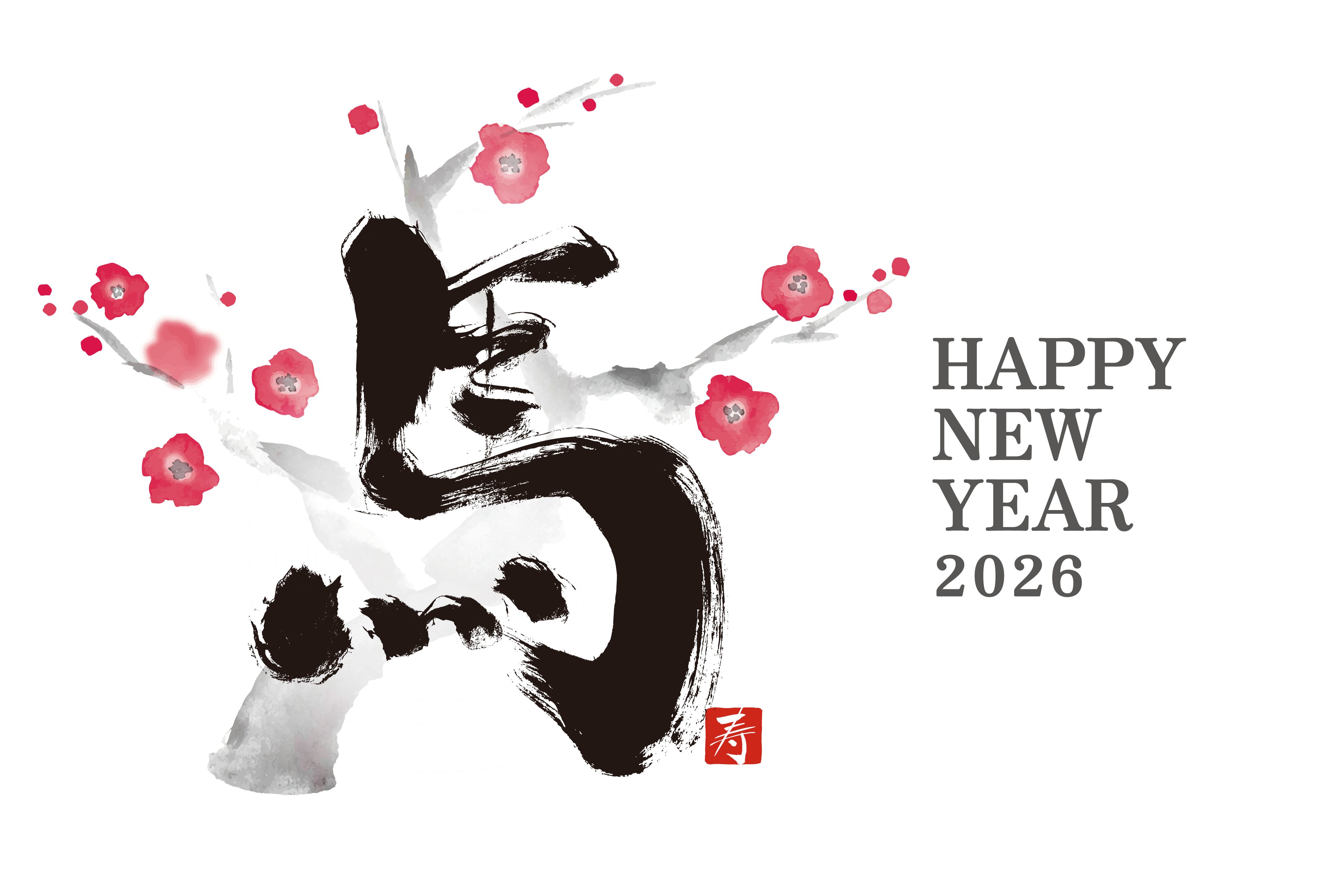 2026年 午年 年賀状 馬文字 梅(単品/英語)ハガキ