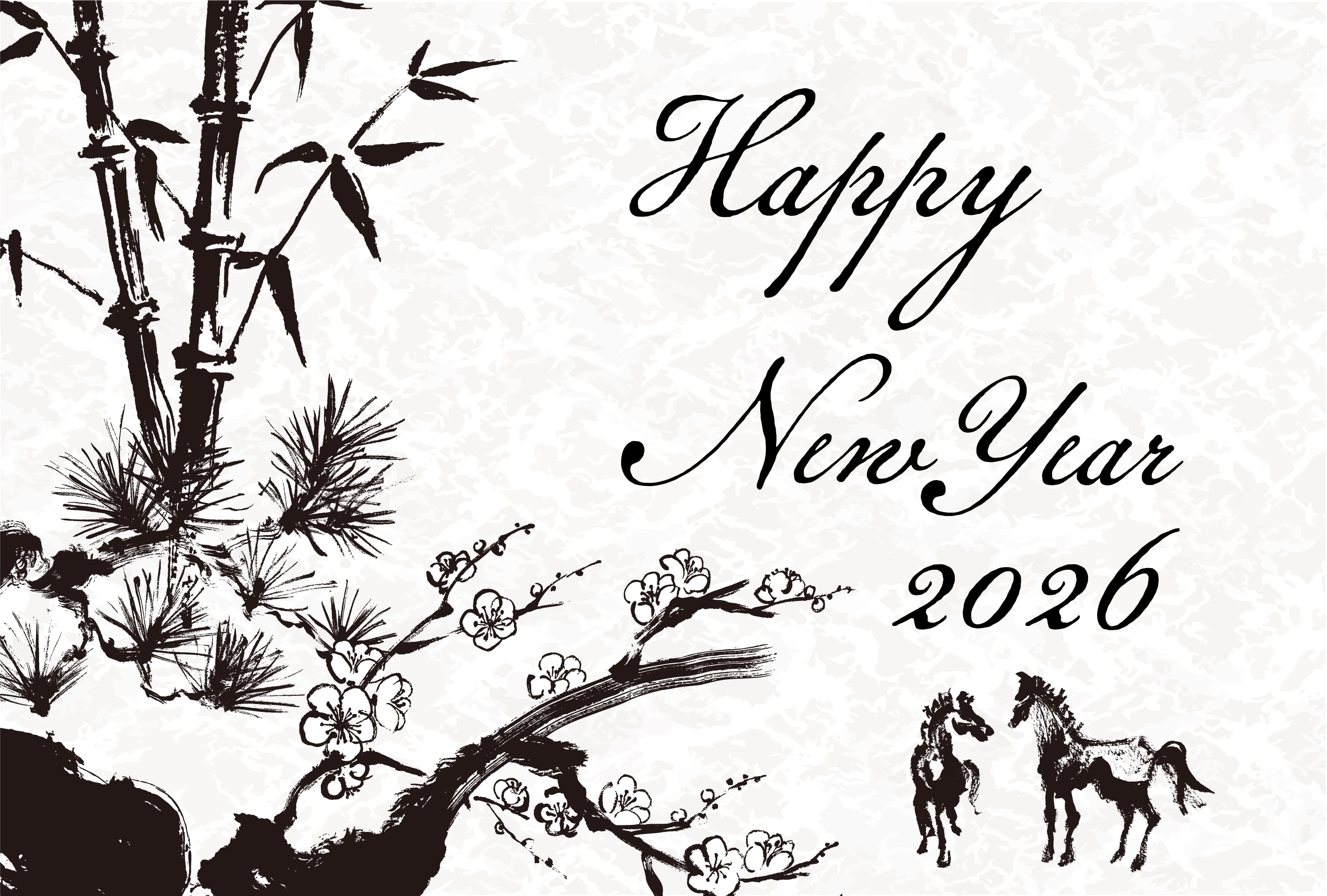 2026年 午年 年賀状 松竹梅 馬(単品/英語 筆記体)ハガキ