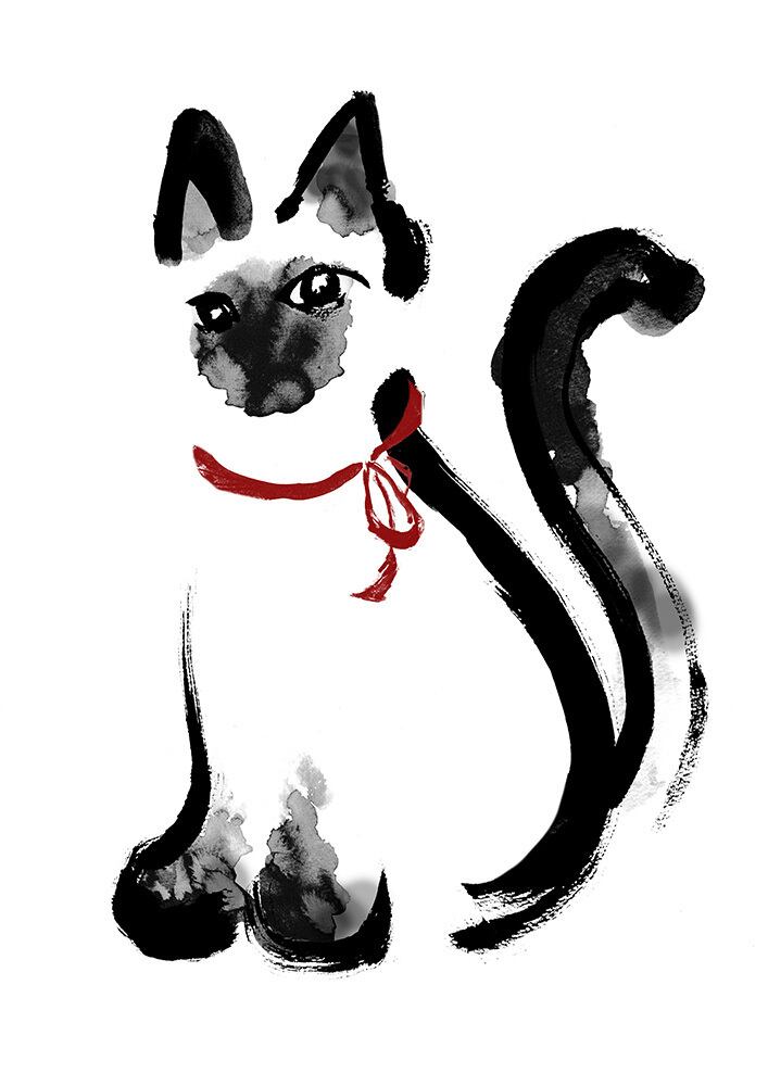 ⚪︎筆で描いたシャム猫の絵をグラフィックソフトで仕上げたものです。
