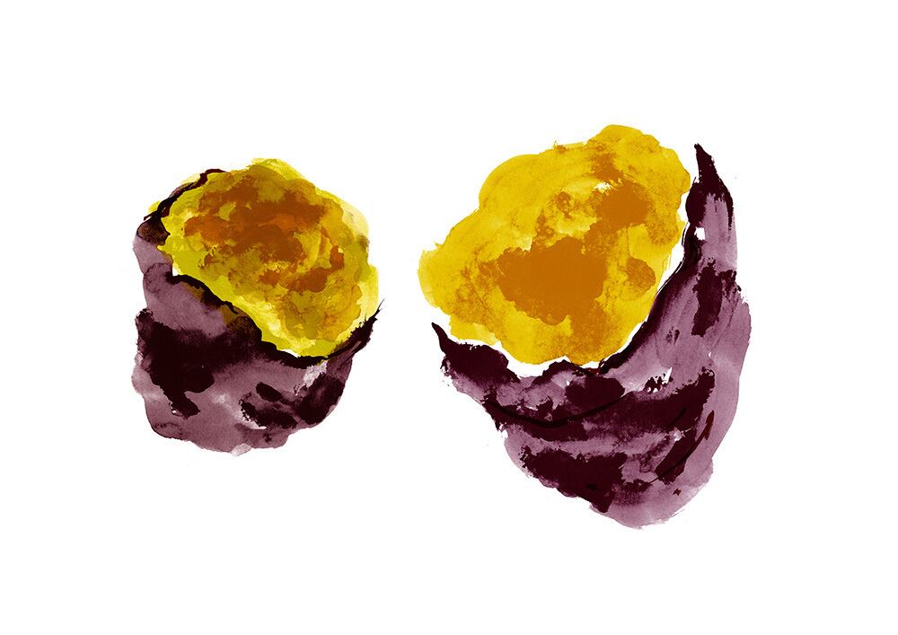 ⚪︎筆で描いた焼き芋の絵をグラフィックソフトで仕上げたものです。