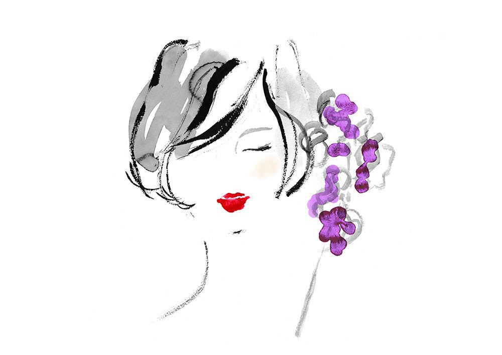 ⚪︎筆で描いた花と女性の絵をグラフィックソフトで仕上げたものです。