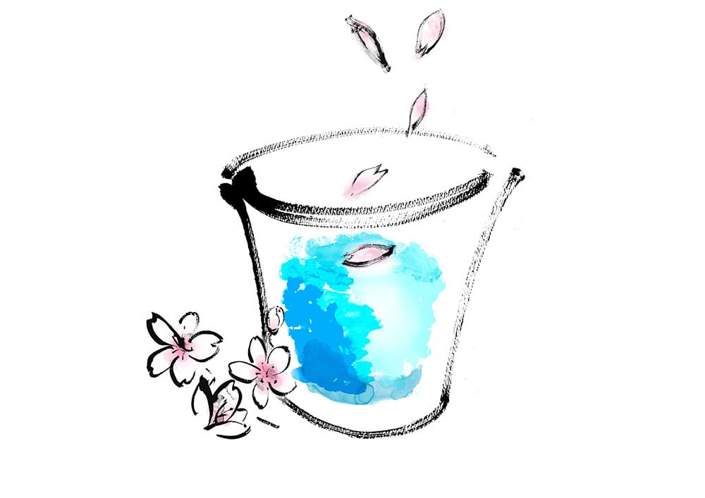 ⚪︎筆で描いた桜と冷酒の絵をグラフィックソフトで仕上げたものです。