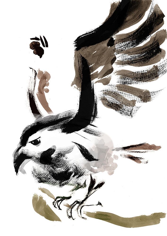 ⚪︎筆で描いた鷹の絵をグラフィックソフトで仕上げたものです。