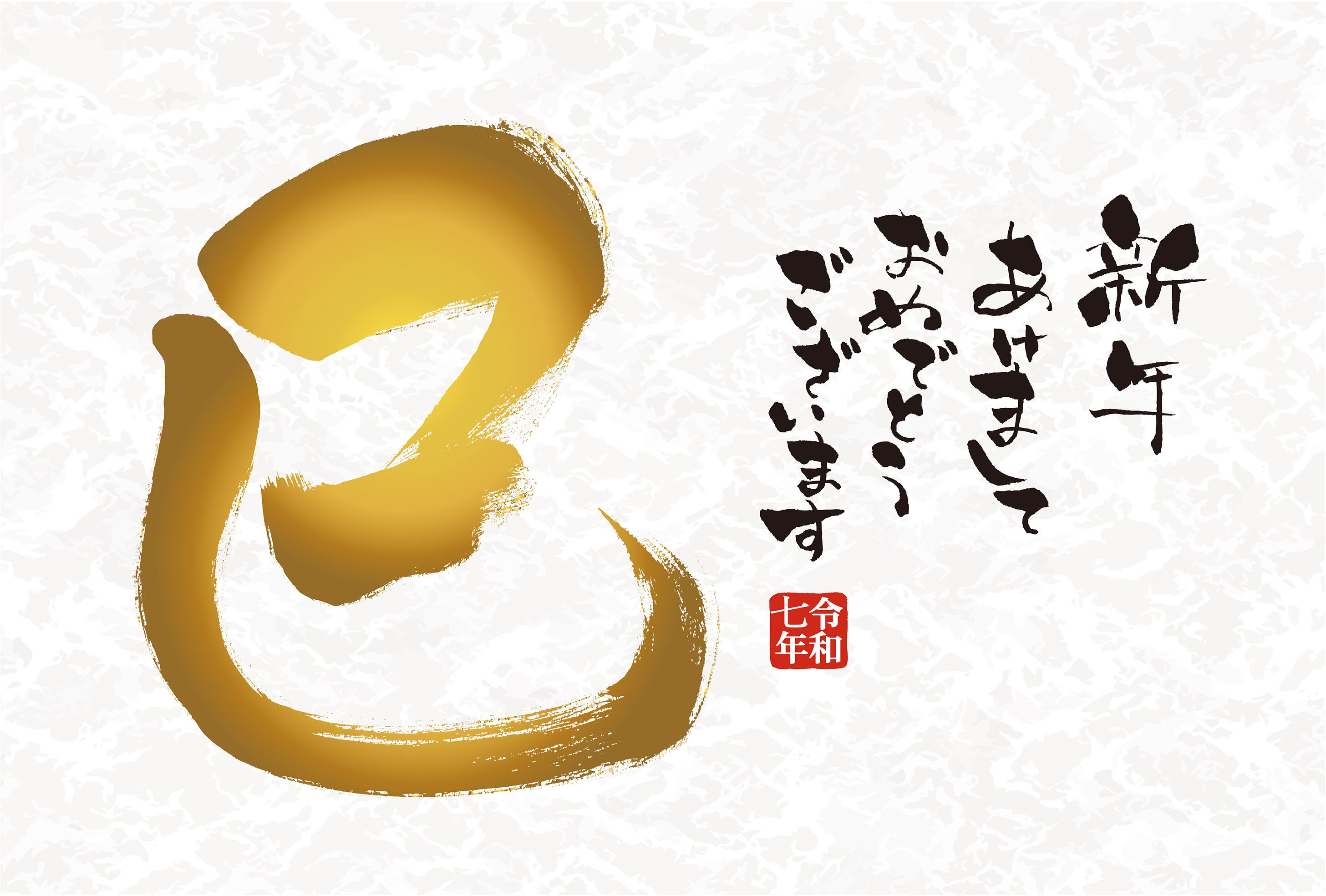 2025年 巳年 年賀状(06)筆文字 金色【挨拶文なし】