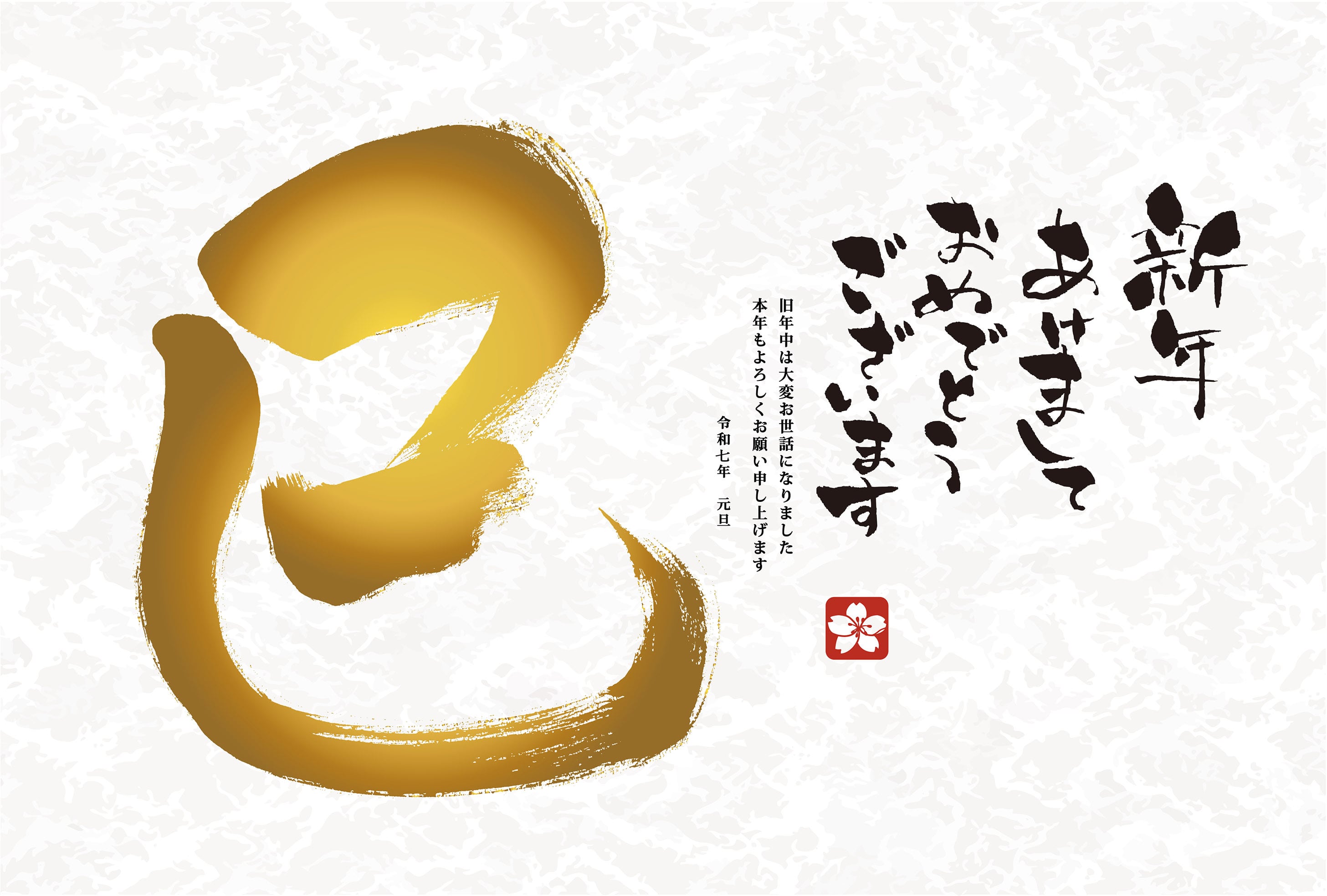 2025年 巳年 年賀状(07)筆文字 金色【挨拶文あり】