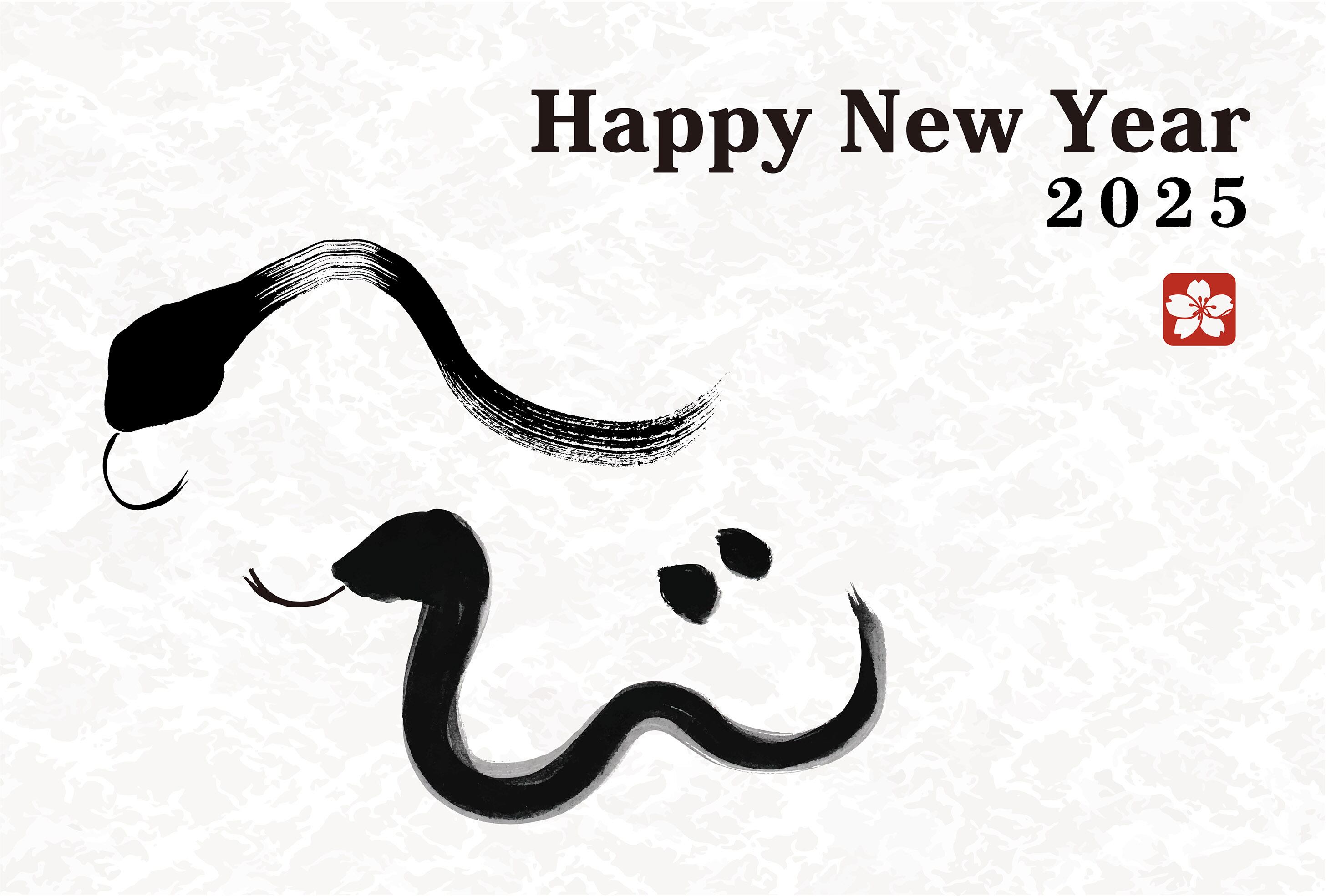 2025年 巳年 年賀状(12)筆文字 絵文字 英文